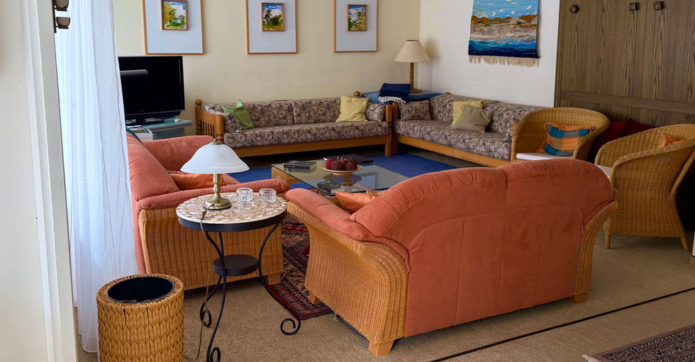 Gemütlicher und grosszüger Wohnbereich mit Sitzgelegenheit für bis zu 10 Personen, dieser Bereich lässt sich für die Nacht abtrennen und mit einem klappbarem Doppel-Schrankbett in ein grosses Schlafzimmer mit Schlafgelegenheit für 4 Personen umwandeln (2 im Doppel-Bett und 2 auf einzelnen Bettsofas)