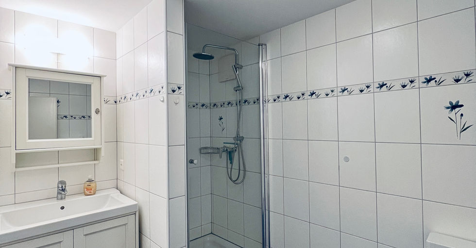 Ein grosses Badezimmer mit Dusche / WC / Lavabo, speziell umgebaut
